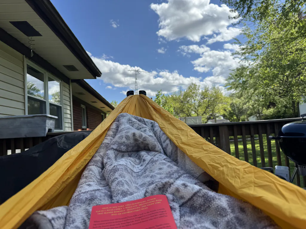 A portable hammock stand that sets up in 3 seconds.